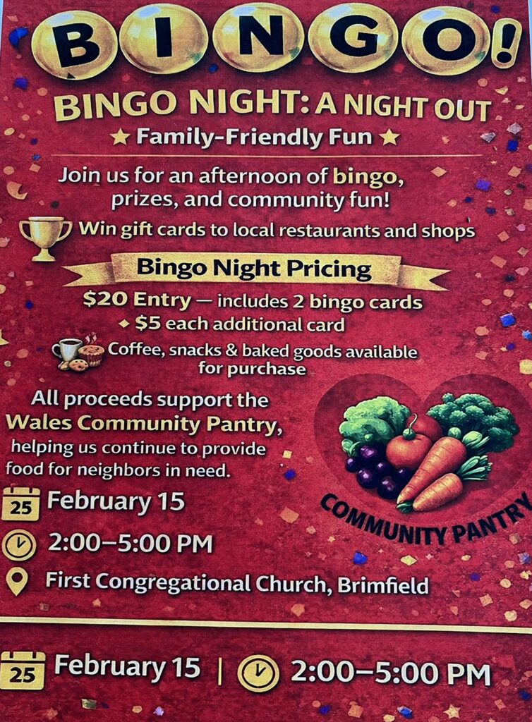 Join us for a fun Bingo afternoon Fundraiser Saturday 2/15/26 2-5pm.